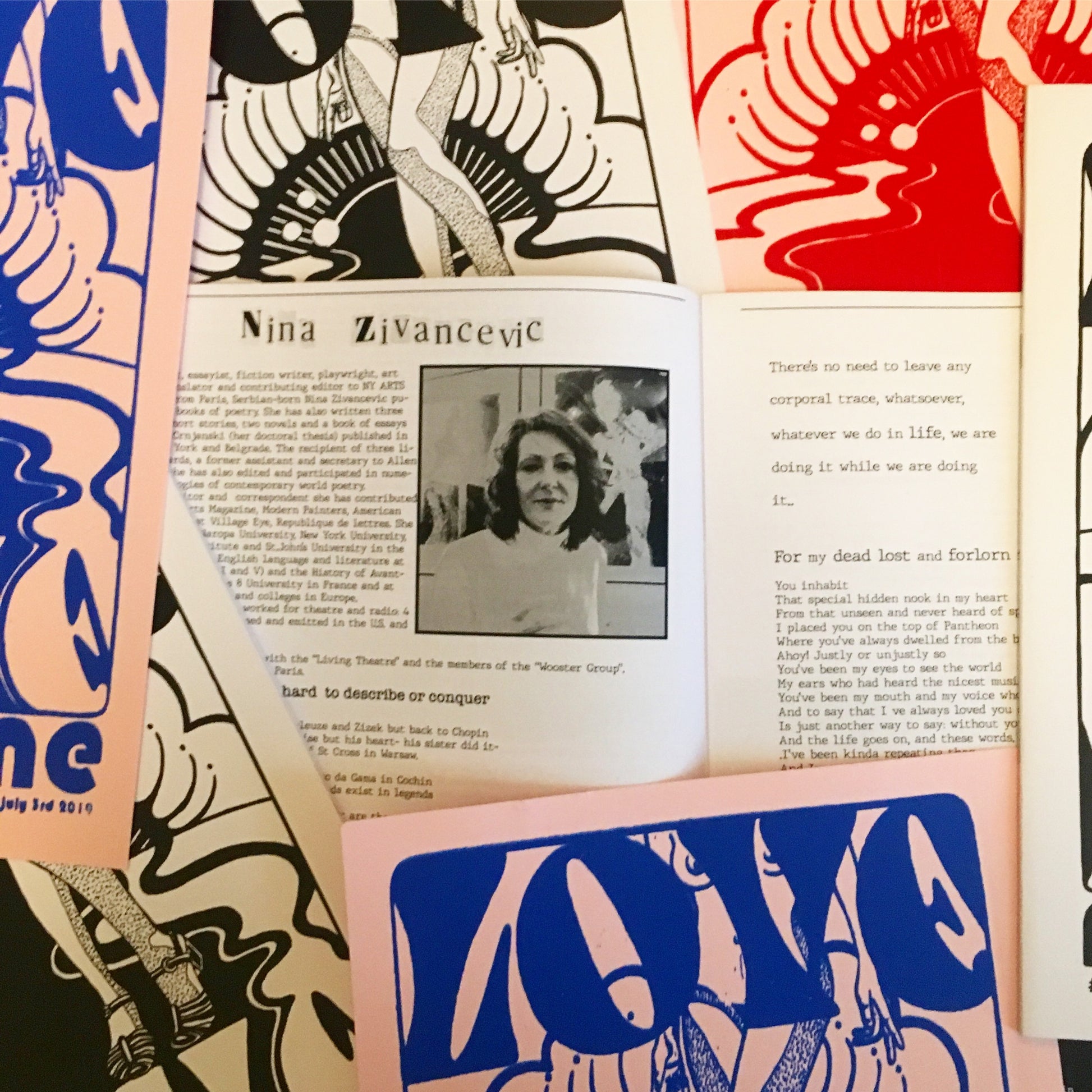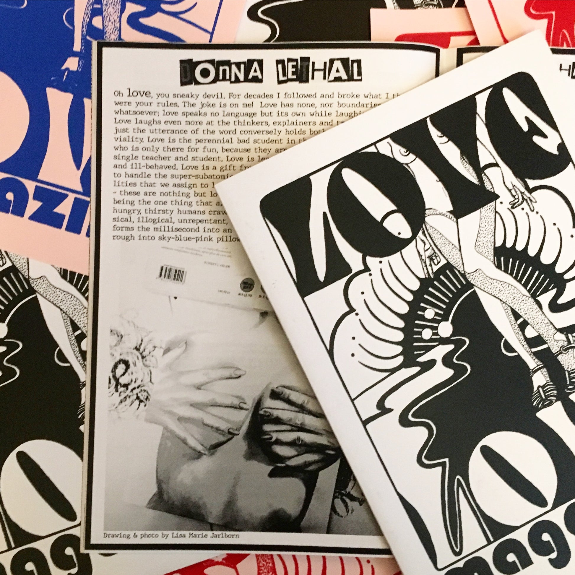 Selling one rare copy of issue 1 of Love Love magazine. 1st edition. Black & white inside. Screen-printed color cover. Signed by the publisher.