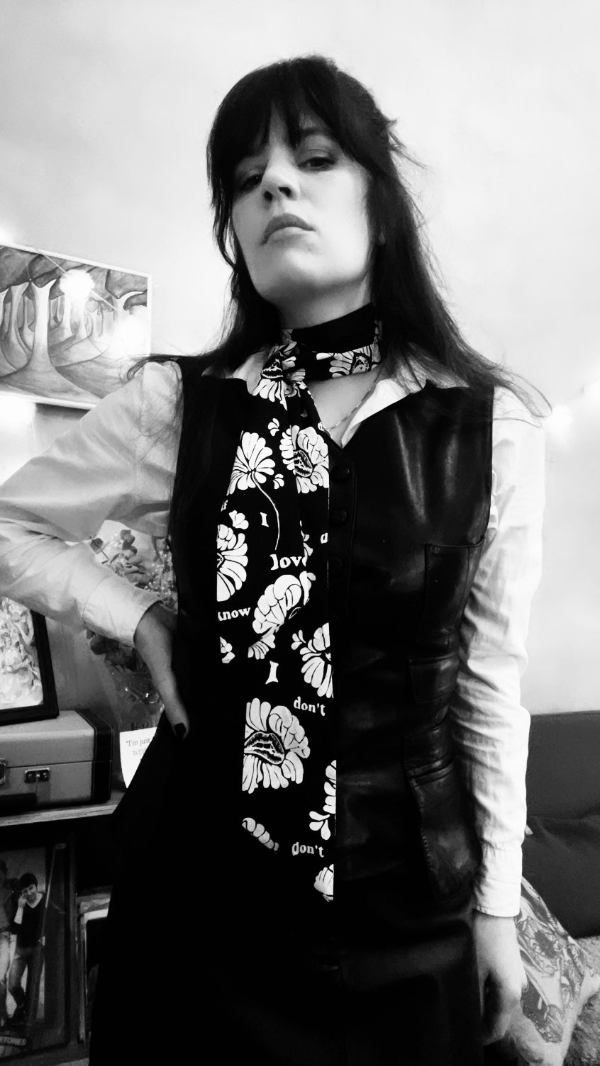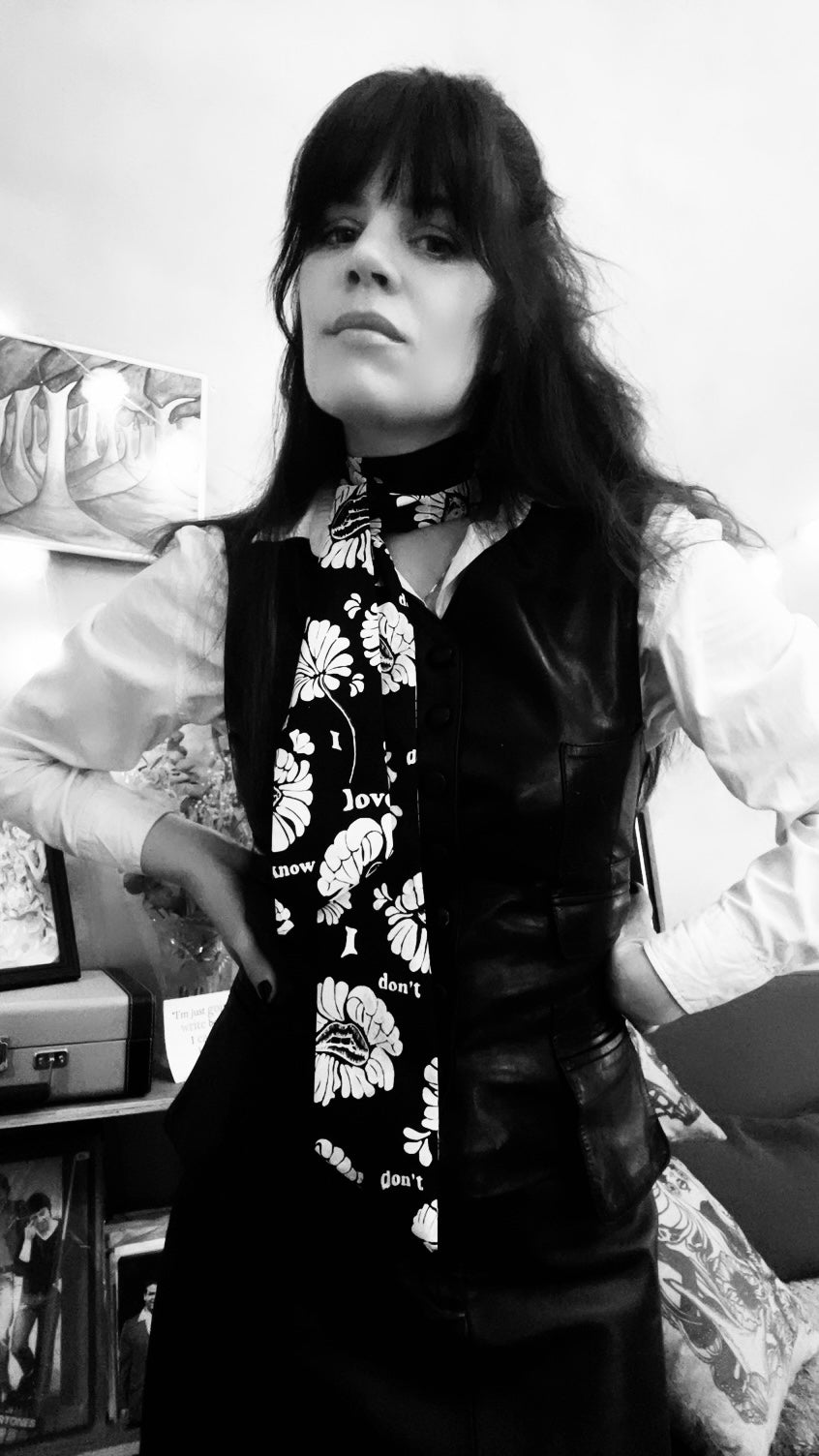 The "I DON'T KNOW IF I LOVE YOU" black silk scarf is 100% silk, silkscreened by Lisa Marie Järlborn in the Paris atelier, after an original illustration and with a handmade screen.